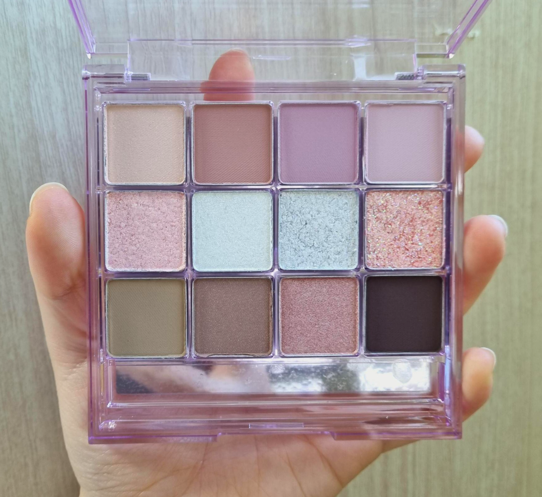 11 : 이 팔레트의 유일한 쉬머펄인데 외색이랑 다르게 약간 3 정도로 밝기가 밝았다. 중간톤으로 깔거나 애교살에 올려도 좋을 듯